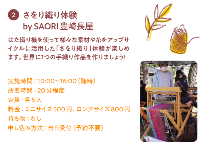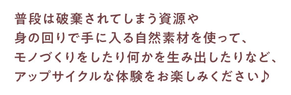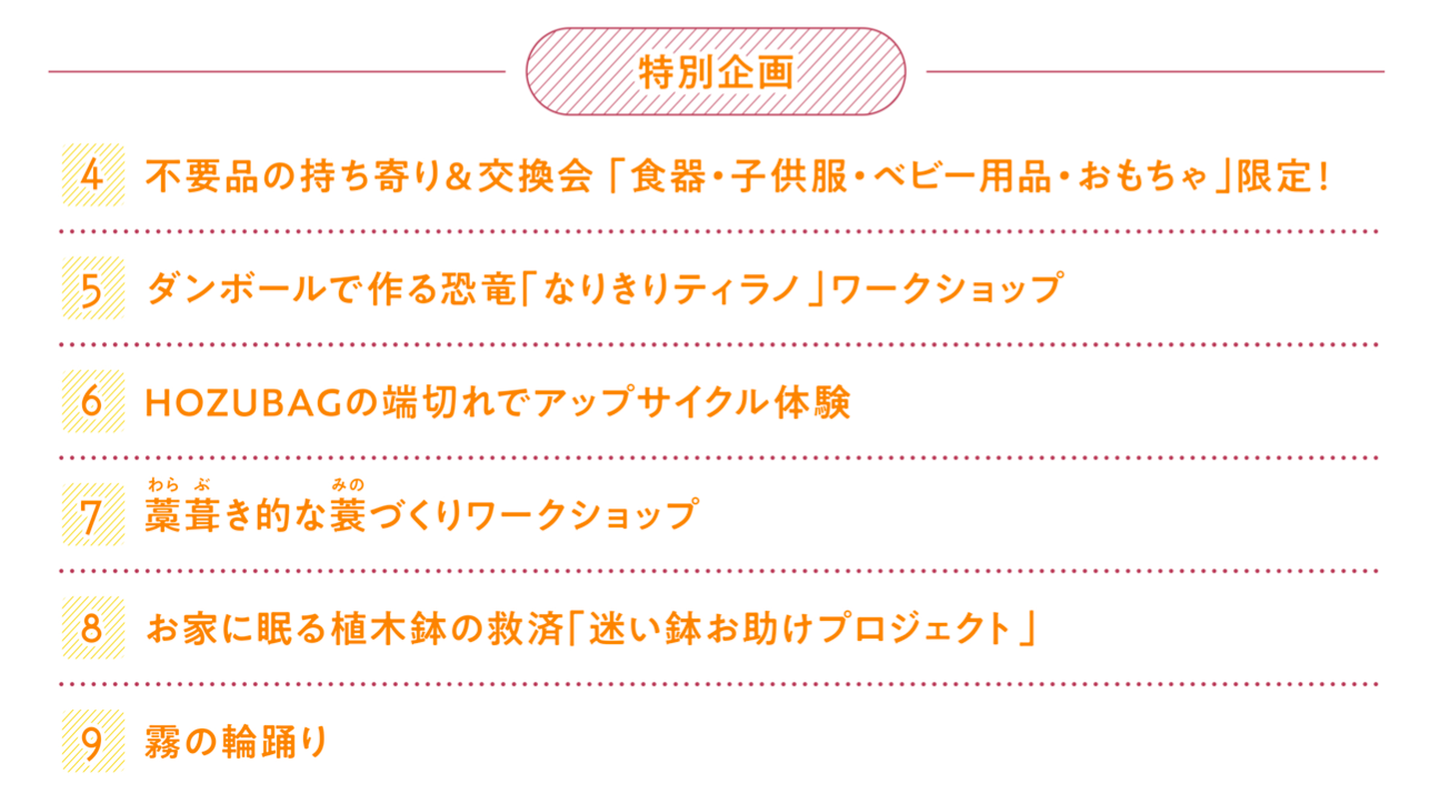 秋の特別版は、ダンボールで作る恐竜「なりきりティラノ」や「手形足形アート」、はた織り機で「さをり織り」体験など、今回も親子で楽しみながら環境や循環を学べる企画が満載です。