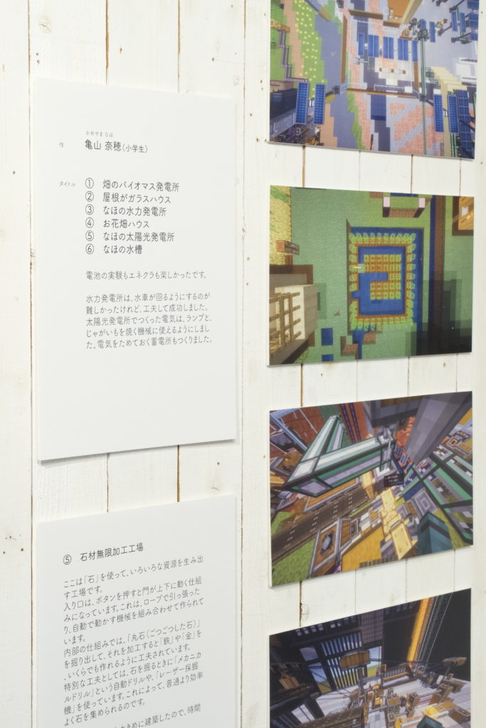 子どもたちには馴染みのあるマイクラが、発電を考える学びとなり、そして作品となり展示されていることで、多くの子どもたちが展示を楽しんでいました。