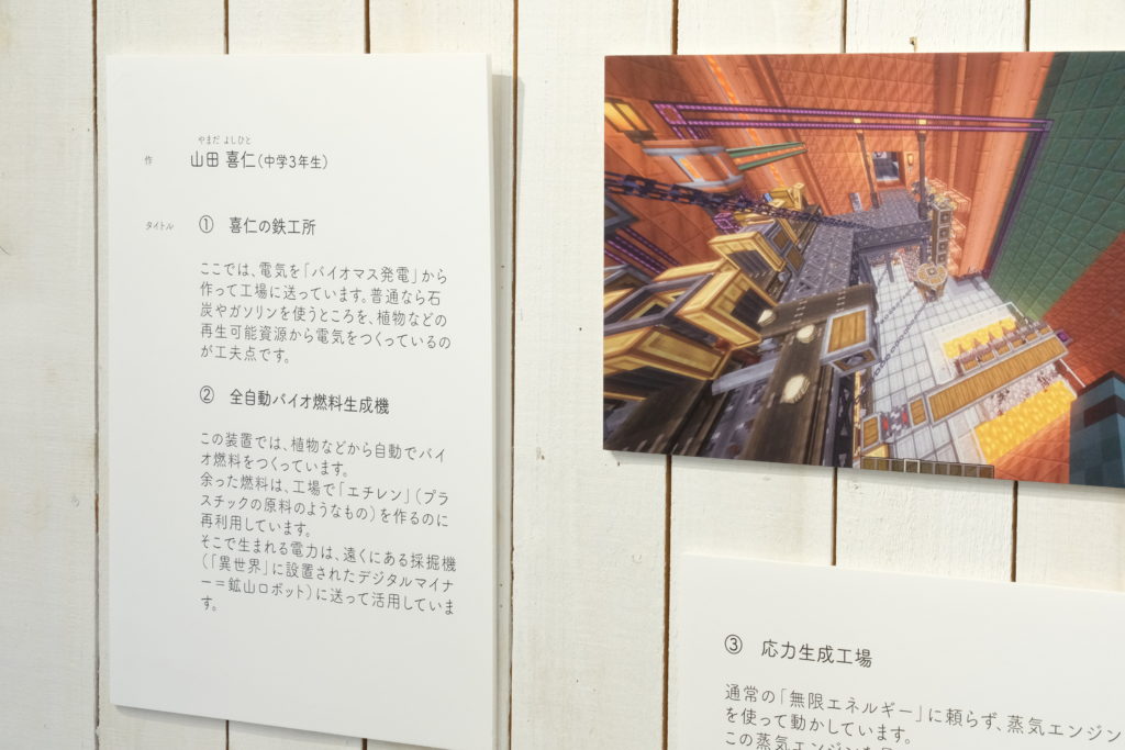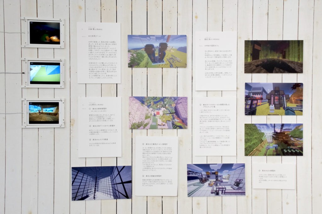 子どもたちには馴染みのあるマイクラが、発電を考える学びとなり、そして作品となり展示されていることで、多くの子どもたちが展示を楽しんでいました。