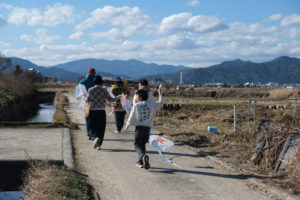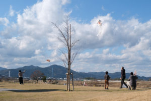 空が広く、山からの風が踊る亀岡。パラグライダーや気球など、空のアクティビティが多いのも納得です。「今日は雨が降るかな」と天気と睨めっこする農家さん。急いで帰る間に、真っ赤な夕日に癒される家事人。亀岡の空はいつでもどーんと送り迎えをしてくれています。そんな空に自分たちのつくる凧を泳がせるワークショップ「凧ふぇすてぃばる」を実施しました。