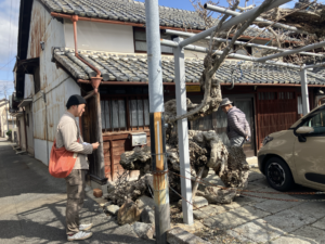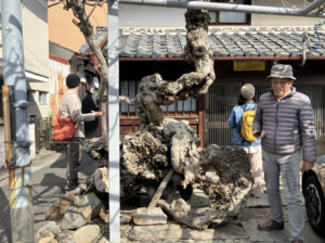 山:あ!亀岡の名木発見!すごい形ですね!入り組んで、鎖も食い込んでますよ。
