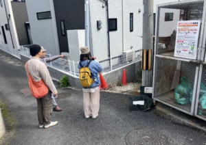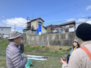 一緒に歩いた人:仲田丞治さん、山成研究所(うー、赤ちゃん、辰巳)とアーティストの中井梓太郎くん