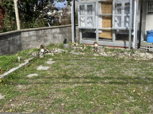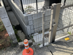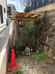 前はここもっと低かったです。ここ見たらわかると思いますけど、道から降りたとこに敷地があったんです。