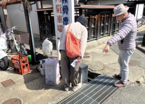 仲:今は水は湧いてない。昔は飲んどったやろね。愛宕さん行って、愛宕さんから帰ってきた人がここの角を曲がって、このあたりで休憩していた。
