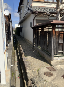 この横切っている道は古い道です。明治の中期以降にできた道ですね。別院の方へ続いている道ですね。