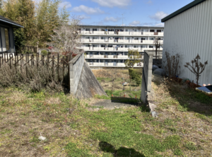 山:この白い窓では何をしてたんやろう。奥に長い建物。