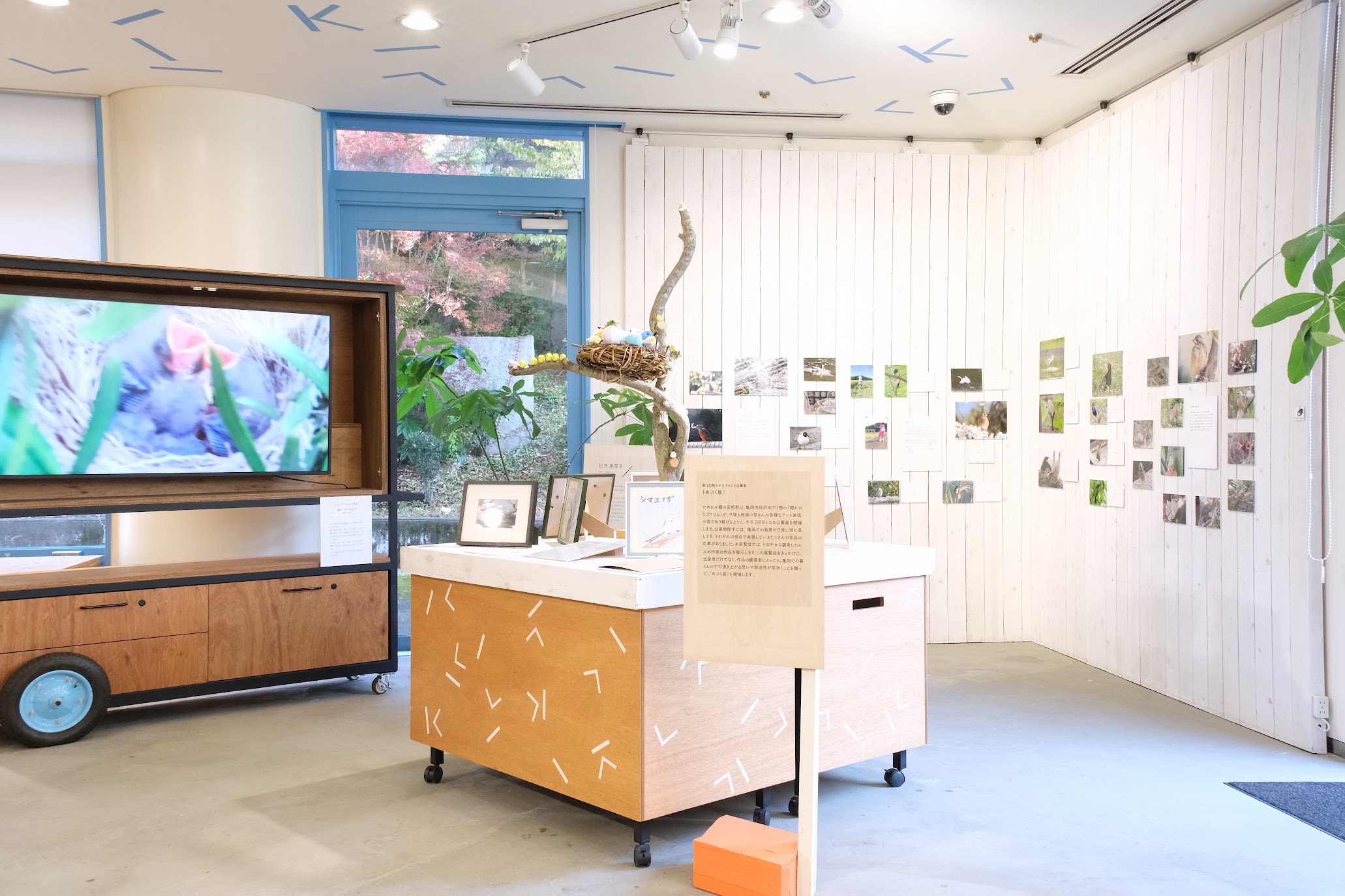 第1部(11月17日~12月15日)では、進藤純子さんの木彫作品と、辻井美菜子さんの写真と映像・手芸作品、第2部(12月17日~1月18日)には米井清訓さんの粘土細工の作品と、河野ひかるさんの絵画作品の展示をしました。