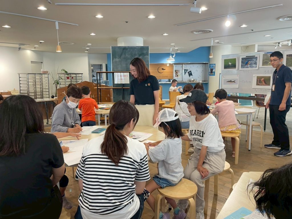8月1日と9日に2回ワークショップを開催し、環境政策課による「プラごみゼロ宣言」の始まりや目的の話を聞いた後、紙芝居の絵や生き物たちの言葉を、参加者の皆で考えました。また、サーキュラーかめおかラボを訪れた方々や、地球環境子ども村のワークショップに参加していた子どもたちが描いた生き物たちも、紙芝居に登場しています。8月22日には、紙芝居師の小川よしおさんを講師に、皆で紙芝居を読み、演じ方の練習をしました。