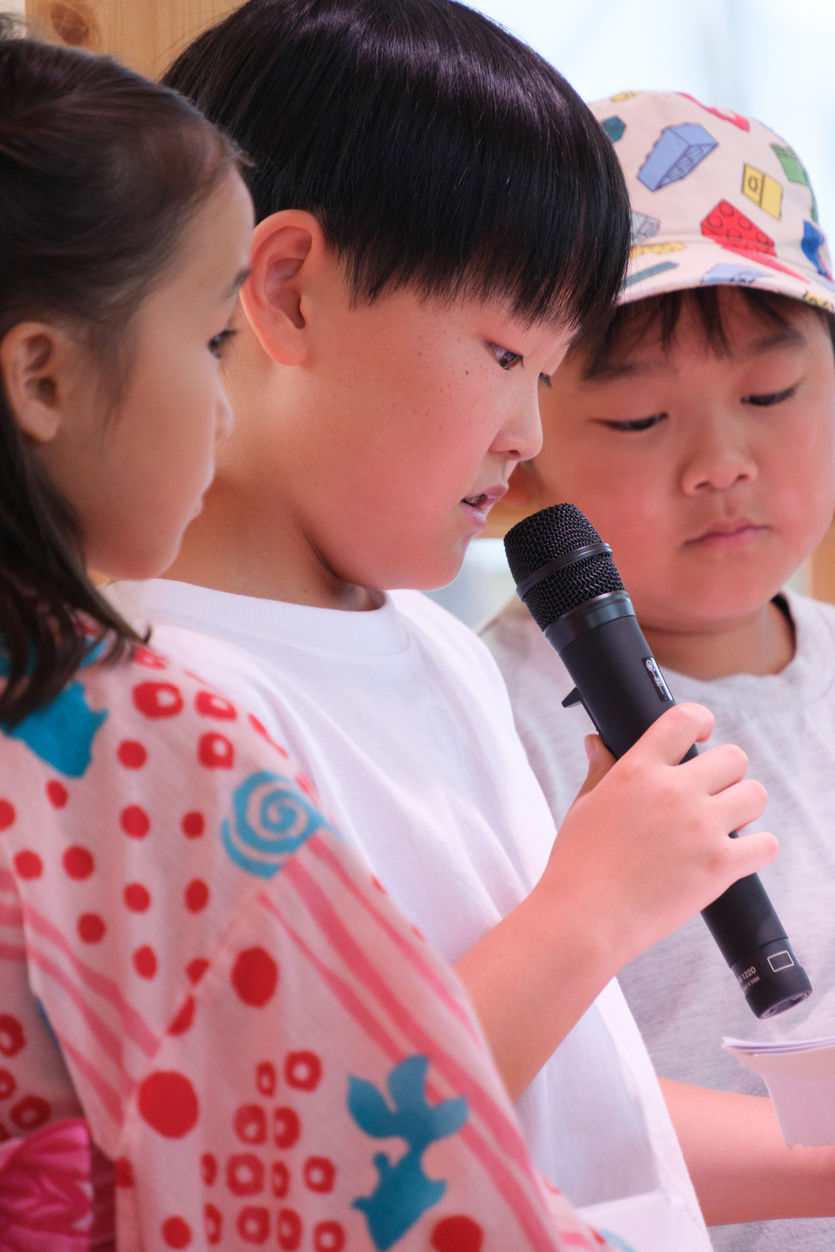 8月30日の、サーキュラーかめおかラボの1周年記念イベントでは、完成した紙芝居の発表会を開催し、これまでワークショップに参加してきた子どもたちが読み手として紙芝居のお披露目をしました。30日は、4部制でお披露目会を開催し、第1部・2部は子どもたち、第3部は大学生、第4部は紙芝居師の小川よしおさんによる実演となりました。
