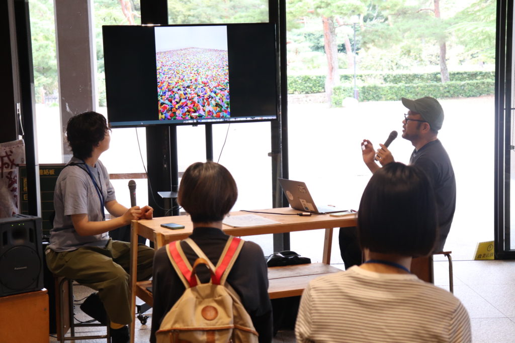 展覧会ツアーでは、本展のディレクターであり出展作家でもある「副産物産店」とともに会場を巡り、在廊していた作家からも制作背景や作品に込めた思いを直接伺いながら、作品を鑑賞しました。