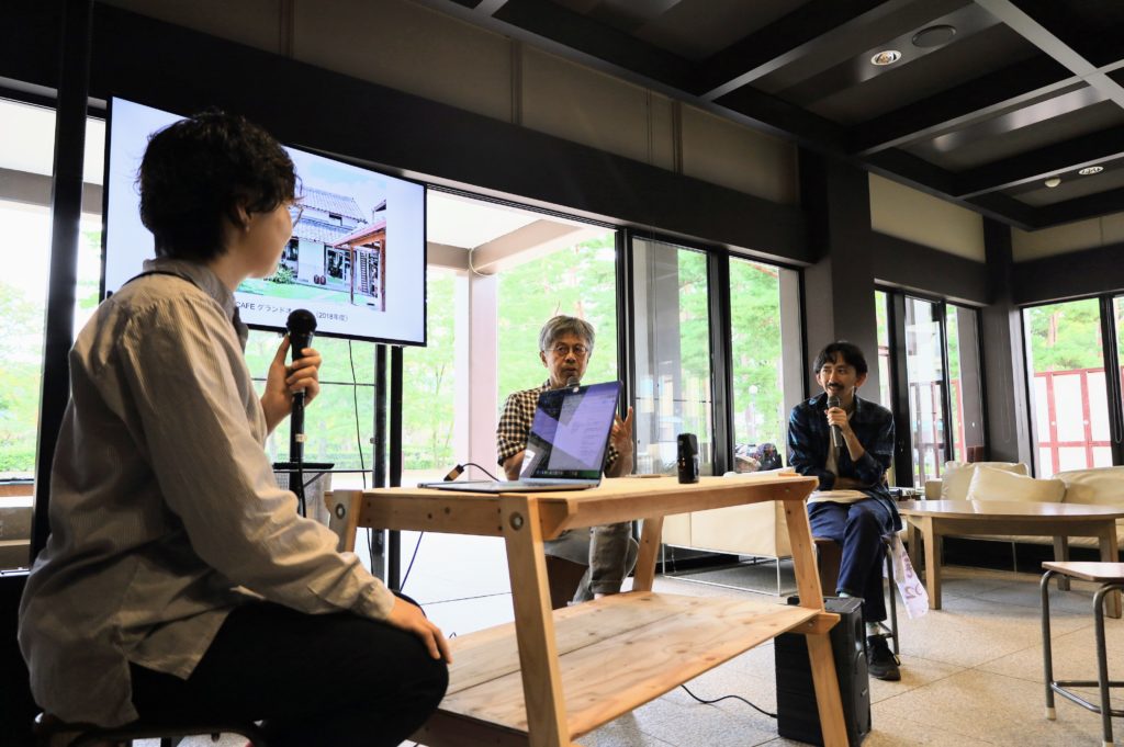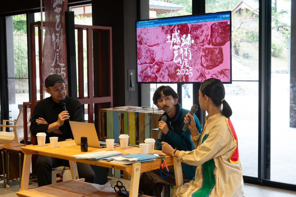 会期の締めくくりとして、本展覧会ディレクターであり、出品作家でもある副産物産店(矢津吉隆、山田毅)、かめおか霧の芸術祭プロデューサー野田智子とともに2週間の展覧会を振り返りつつ、亀岡という地域で文化芸術がこれからどのように根づき、広がっていくのかを展望を語りました。未来へつながる対話として、本展のラストを彩りました。