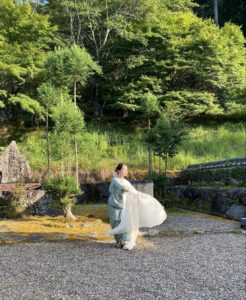 2020年より、奉納舞を神社仏閣で舞いはじめる。盆踊りの復興やお田植え祭のプロジェクトなど、土地に根差したフィールドワークを通した舞台を重ねる。