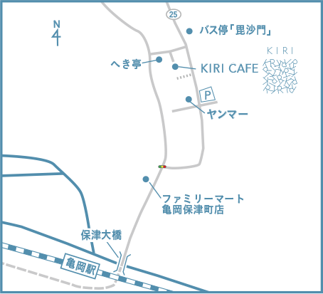 JR亀岡駅より〔京阪京都交通バス〕川東線F11 千代川駅前行「毘沙門」下車 徒歩2分